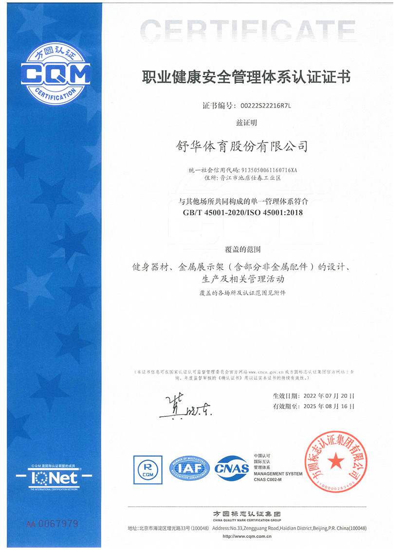 生产制造的产品种类主要包括:力量训练器、椭圆车、跑步机、脚踏车等运动健身器材以户外路径产品等。公司技术力量雄厚,设备自动化水平高,从德国、日本等国家和地区进口居当今世界领先水平的多项设备,完善的整机组装生产线、配件生产线,年可生产各种运动健身器材40万台,年产值8-10亿人民币。       完善的产品研发中心分别设立有氧、无氧、电子智能化项目部,使产品研究更加专业化、精细化。公司已通过中国质量认证中心对公司进行的“ISO9001质量管理体系认证”。